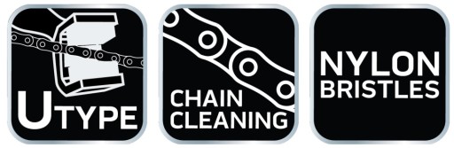 - do czyszczenia łańcuchów w motocyklach, rowerach, quadach i maszynach, bez konieczności ich zdejmowania,