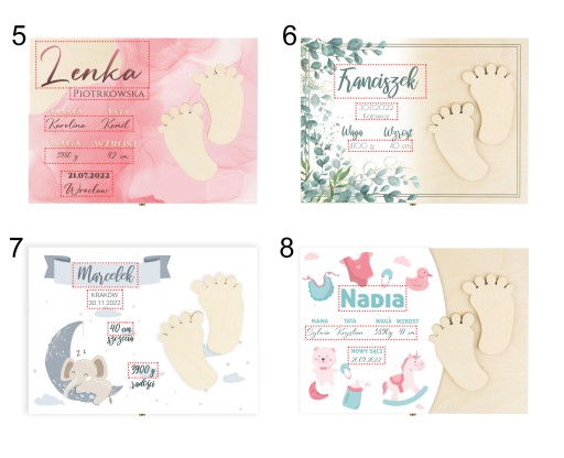 Po dokonaniu zakupu pamiętaj o przesłaniu informacji o wybranym wzorze oraz danych niezbędnych do personalizacj. Czerwoną ramką zaznaczono miejsce podlegające zmianom.