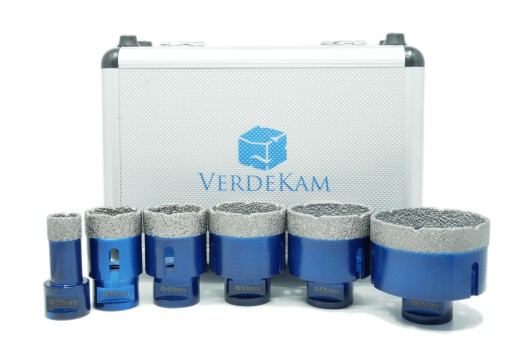 Zestaw otwornic/koronek premium do gresu, granitu lub ceramiki, o średnicy 20mm-68mm, mocowanie gwint M14, do pracy na sucho i na mokro.