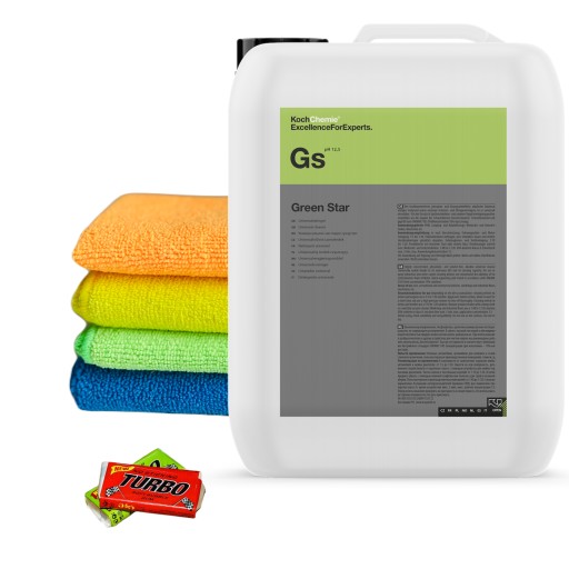 Koch Chemie Green Star to silnie skoncentrowany, nie zawierający fosforanów i rozpuszczalników, alkaliczny, uniwersalny środek czyszczący. Ze względu na bardzo dużą zdolność rozpraszania brudu i oleju, znajduje wszechstronne zastosowanie do czyszczenia posadzek warsztatowych i przemysłowych, czyszczenia wewnątrz i od zewnątrz samochodów osobowych i ciężarowych oraz mycia silników. Specjalne inhibitory korozji zapewniają wysoką tolerancję materiału, nawet wrażliwych elementów, takich jak np. anodowane aluminium. Przy zastosowaniu w urządzeniach do prania ekstrakcyjnego i innych urządzeniach do czyszczenia dywanów zalecamy dodanie środka przeciwpieniącego Kocentschäumer. Nadaje się również optymalnie do biologicznych stacji uzdatniania wody użytkowej. Ulega szybkiemu oddzieleniu i został sprawdzony według normy ÖNORM 5105 (stężenie testowe: roztwór 10%). Zgodność z normami VDA, klasa A: czas działania max. 5 min., max. stężenie aplikacji 1:3