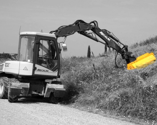 Kosiarka bijakowa do koparki, koparko ładowarki, mini koparki; pozwala na wykaszanie trawy i zarośli, np. rowów melioracyjnych, nasypów kolejowych, terenów sąsiadujących z liniami energetycznymi, a także bieżące utrzymanie np. miejskich terenów zielonych.