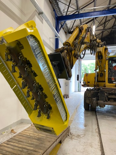 Kosiarka bijakowa do koparki, koparko ładowarki, mini koparki; pozwala na wykaszanie trawy i zarośli, np. rowów melioracyjnych, nasypów kolejowych, terenów sąsiadujących z liniami energetycznymi, a także bieżące utrzymanie np. miejskich terenów zielonych.