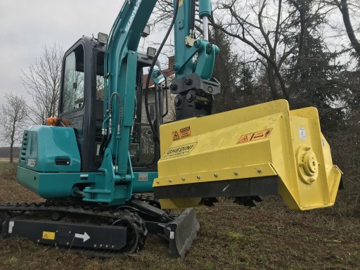 Kosiarka bijakowa do koparki, koparko ładowarki, mini koparki; pozwala na wykaszanie trawy i zarośli, np. rowów melioracyjnych, nasypów kolejowych, terenów sąsiadujących z liniami energetycznymi, a także bieżące utrzymanie np. miejskich terenów zielonych.