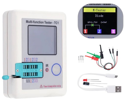 Wykorzystamy go do wykrywania tranzystorów NPN i PNP, kondensatora, rezystora, diody, triody, kanału N i kanału P M MOSFET, IGBT, JFET, triaka oraz baterii.