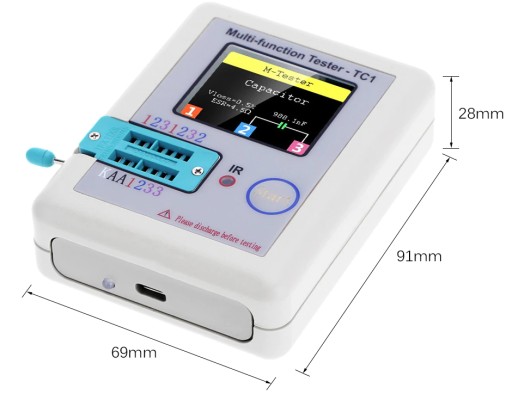 Tester elementów elektronicznych z dużym kolorowym wyświetlaczem z powodzeniem przetestuje diody, rezystory, tranzystory, cewki, kondensatory itd.
