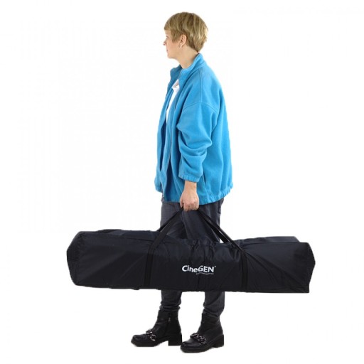 Torba transportowa marki CineGEN ™, to świetne akcesorium do wygodnego przenoszenia sprzętu studyjnego. Dzięki trwałemu materiałowi i solidnym szwom, transportować można zarówno statywy, softboxy jak również żarówki. Wyjątkowo pojemna i długa torba. Pomieści wszelkiego rodzaju sprzęt studyjny, fotograficzny oraz wszystkie niezbędne akcesoria. Dzięki miękkiej piance którą wypełniona jest torba, sprzęt będzie bezpiecznie amortyzowany w każdych warunkach. Torba posiada uchwyt typu rączka.