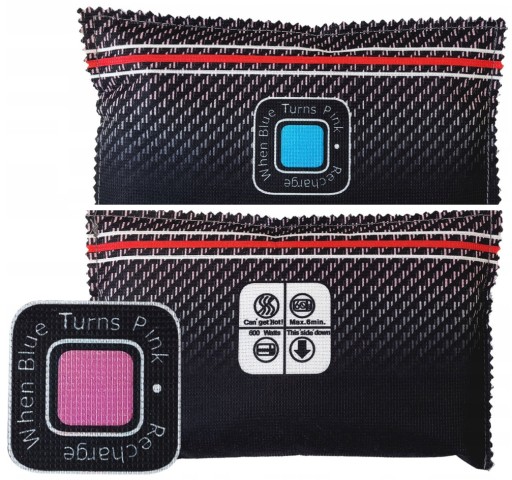 Na pochłaniaczu widnieje instrukcja postępowania w przypadku wykorzystania maksymalnych możliwości pochłaniania oraz niebieski wskaźnik. W momencie gdy zmieni swój kolor na różowy należy umieścić go w kuchence mikrofalowej na 6 minut w mocy 600W. Po takim zabiegu pochłaniacz jest znów gotowy do pracy.