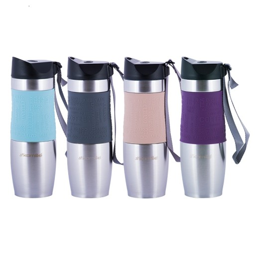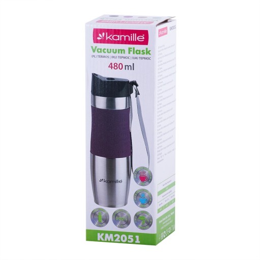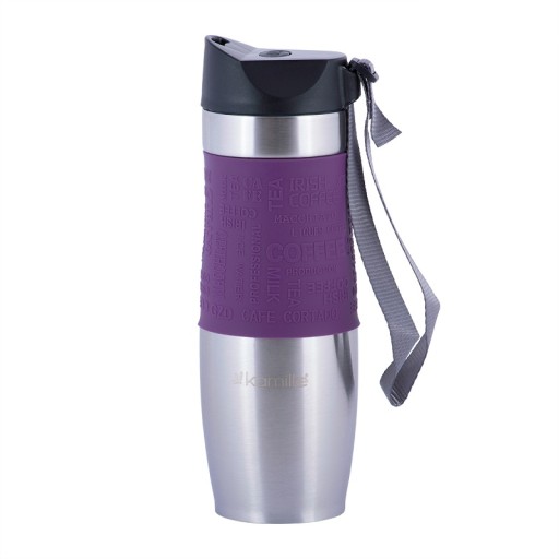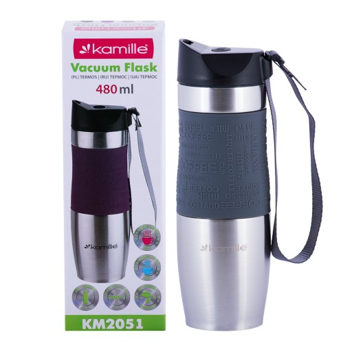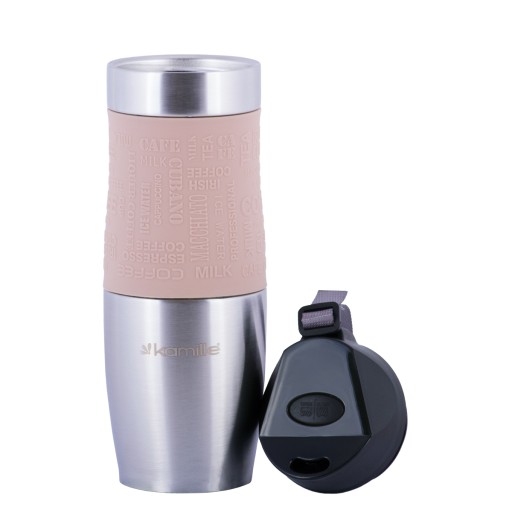 Kubek termiczny 480 ml ze stali nierdzewnej z powłoką antypoślizgową i paskiem KAMILLE KM-2051