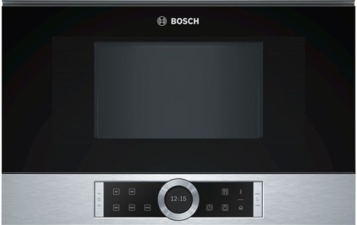 Zestaw marki Bosch, w skład którego wchodzą: Piekarnik HBG 634BS1 + Kuchenka mikrofalowa BFR 634GS1