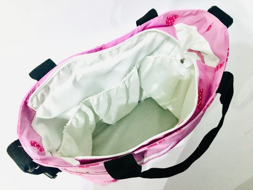 *torba posiada 2 zaczepy na wózek doszyte na stałe oraz długi dopinany pasek z regulatorem długości