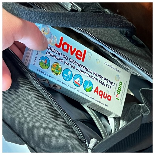 Opakowanie Javel® AQUA jest lekkie, zajmuje niewiele miejsca w bagażu podręcznym. Produkt pakowany w blistry w ilości 20 sztuk w kartonowym pudełku. Tabletki mają długi termin ważności. Tabletki do dezynfekcji wody są niezwykle przydatne podczas wyjazdów w tropiki, outdoorze, survivalu, tam, gdzie nie mamy pewności co do jakości wody.