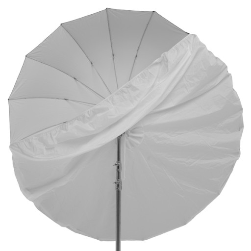 Biało-czarny parasol paraboliczny DEEP PRO STUFF może być z powodzeniem używany zarówno z czaszami, jak i bez nich, co pozwala na wykorzystanie całej powierzchni odbijającej. Zastosowanie czaszy skutkuje zawężeniem strumienia światła i nieznacznym wzrostem kontrastu.