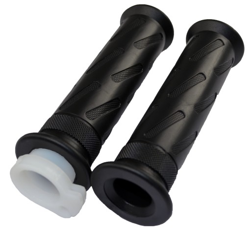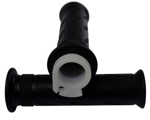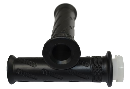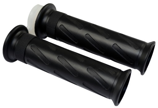Model: SPEED Manetki przeznaczone na kierownicę 22 mm (7/8 cala). Gumowy grip wysokiej jakości z integrowanym rol gaz w zestawie. Wyżłobienia na rączce zapewniają pewniejszy i bardziej komfortowy chwyt. Zestaw składa się z 2 manetek, jedna o większej średnicy na Rol Gaz który jest już zamontowany ułatwiając póżniejszy montaż na kierownicy motocykla.