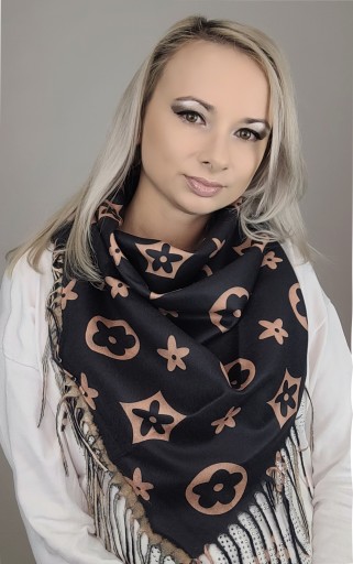 Najnowsza kolekcja szalików z wiskozy w kolorze czerni, szarości i złota. Ciepłe bardzo przyjemne w dotyku i efektowne. Krótsze boki zakończone frędzlami.