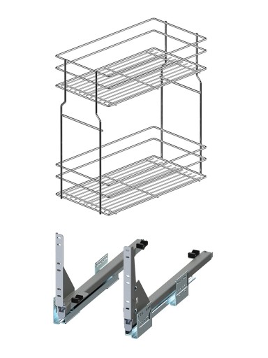 Kosz cargo 30cm II-poziomowe pełen wysuw z systemem PUSH TO OPEN efekt chrom renomowanego polskiego producenta Rejs.
