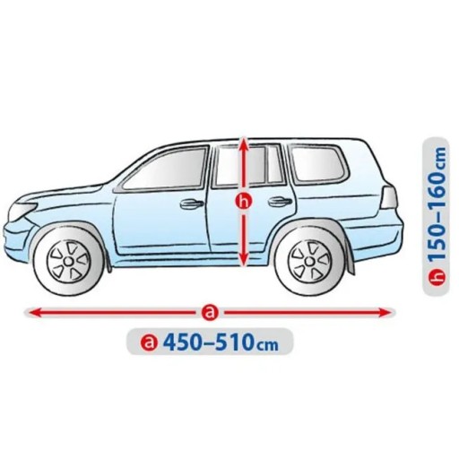 - Zakrywa cały pojazd, lekko zachodząc na dół, dzięki czemu chroni również dolne elementy pojazdu.
