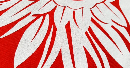 Intensywny czerwony kolor materiału w połączeniu z dumnym, białym orłem ze złotą, zamkniętą i zwieńczoną krzyżem koroną, to idealna propozycja dla każdej patriotki. Duma, jaką wyraża połączenie kolorów narodowych, a zarazem prostota i bezpośredni przekaz wzoru, nadają mu niepowtarzalnego charakteru.Dla dodatkowego wyróżnienia dumy polskiego, białego orła użyliśmy złotej farby (brokatowa) dającej efekt połysku. Do jak najlepszego odwzorowania i intensywności bieli postanowiliśmy nałożyć 2 warstwy farby.