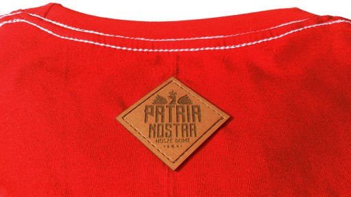 Intensywny czerwony kolor materiału w połączeniu z białym, dominującym napisem: Polska, wykonanym stylową, ale zarazem czytelną czcionką, to idealna propozycja dla każdej patriotki. Niżej znajduje się wymowne hasło "pamiętam skąd jestem", przypominające, że duma i poczucie narodowe jest niezależne od miejsca zamieszkania. Subtelnie zaznaczamy także bliski naszym sercom symbol orła w koronie, okraszonego kaligraficznym napisem z naszym firmowym hasłem: "Noszę Dumę".Nadruk z przodu wykonany jest dwoma kolorami farb, metodą sitodruku. Do jak najlepszego odwzorowania i intensywności bieli nałożone zostały 2 warstwy farby. Tło wzoru stanowi mix elementów, głównie symbolizujących nieodłączną dla polskiej tożsamości ludowość. Wykonane bordową farbą układają się w kształt serca, gustownie wtapiając się w kolor materiału, a także dodatkowo akcentując miłość do Ojczyzny.