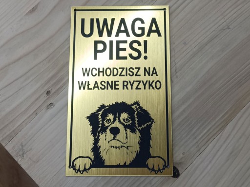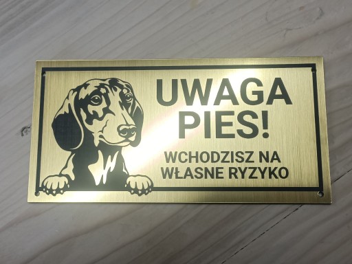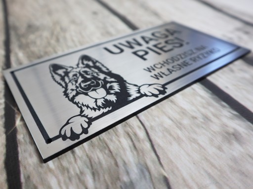 Grawerowana tabliczka UWAGA PIES! o wymiarze 20 x 10 cm