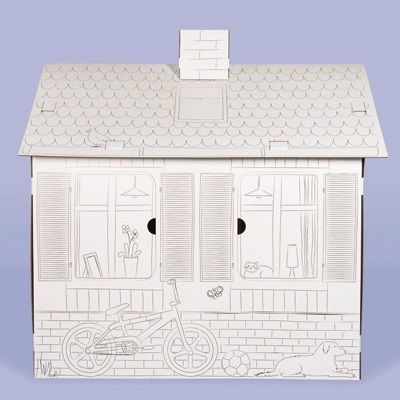 Domek, wykonany z 5-warstwowej, białej tektury falistej, do złożenia i kolorowania. Zabawka nie wymaga kleju, ani nożyczek do jej złożenia.