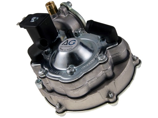 Reduktor Tomasetto Achille AT-07 140HP zintegrowany z elektrozaworem i filtrem fazy ciekłej gazu.