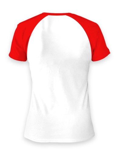 Koszulka wykonana jest w kroju raglan, z kontrastującym, czerwonym materiałem użytym do rękawków i kołnierzyka, który dodatkowo akcentuje symbolicznie wykonane na piersiach: białego orzełka w koronie na czerwonej tarczy, a także nazwę naszego państwa, pisaną niewielkimi literkami, charakterystycznie dobranym rodzajem czcionki. Całość nastawiona jest oczywiście w pierwszej kolejności na nasze barwy narodowe.