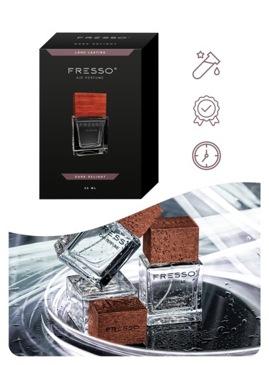 Fresso Dark Delight Air Perfume - wspaniała kompozycja zapachowa, zamknięta w ekskluzywnym szklanym flakonie perfum Fresso hipnotyzuje swą wyrazistą głębią. Nasadka wykonana z drewna podkreśla ich wyjątkowość.