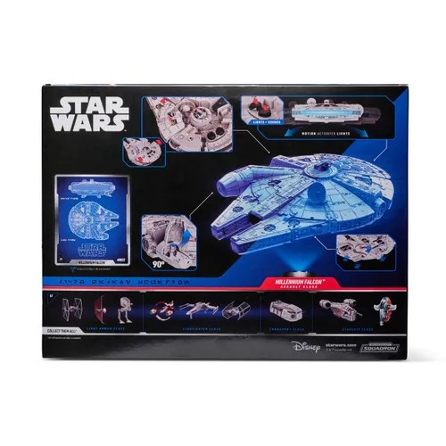 Zestaw zawiera też ruchome 3 cm mikrofigurki Hana Solo, Chewbacci, Księżniczki Lei i Obi-Wana Kenobiego, które pasują do każdego małego statku powietrznego z eskadry galaktycznej „Gwiezdnych wojen”. Zbierz całą kolekcję małych pojazdów z eskadry galaktycznej „Gwiezdnych wojen” i wzmocnij swoją flotę.