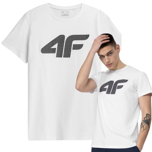 МУЖСКАЯ ФУТБОЛКА 4F ХЛОПКОВАЯ СПОРТИВНАЯ ФУТБОЛКА БАЗОВЫЙ БОЛЬШОЙ ЛОГОТИП R M
