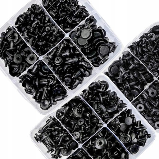 Zestaw spinek mocujących obejmują 16 najpopularniejszych rozmiarów, które są powszechnie stosowane w większości samochodów dostępnych na rynku.