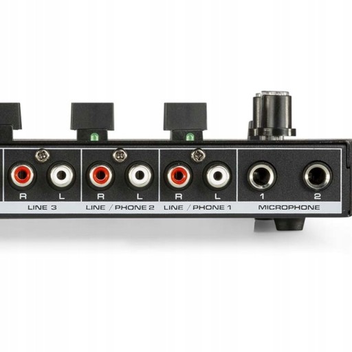 Mikser wyposażony jest w 4 wejścia RCA (RCA) do podłączenia zewnętrznego sprzętu audio. Dwa z tych wejść można przełączać między „Line” i „Phono”, dzięki czemu gramofony bez wbudowanego przedwzmacniacza można bez problemu podłączyć do miksera. Trzeci kanał można przełączać między dwoma wejściami liniowymi, co daje łącznie cztery kanały do podłączenia zewnętrznego sprzętu audio. Możliwe jest również nawiązanie połączenia bezprzewodowego z urządzeniem Bluetooth, takim jak telefon lub tablet. Po nawiązaniu połączenia muzyka odtwarzana na sparowanym urządzeniu jest przesyłana bezprzewodowo do miksera w celu wykorzystania w końcowym miksie. Do śpiewania, prezentacji lub pobudzania publiczności jako DJ, dostępne są dwa wejścia mikrofonowe z funkcją talkover. Dzięki tej funkcji można ściszyć muzykę jednym naciśnięciem przycisku, aby nadać sygnałowi mikrofonu „priorytet”. Oczywiście nie brakuje podłączenia do słuchawek, dzięki czemu można przygotować kolejną piosenkę jako DJ.