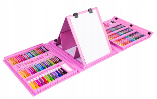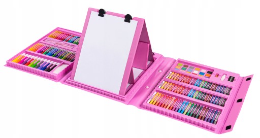 Zaskocz swoje dziecko tym wspaniałym zestawem, który z pewnością jest marzeniem każdego chłopca i dziewczynki lubiących rysować czy malować! Twoje dziecko będzie mogło tworzyć piękne obrazy i rysunki. Ogromny zestaw akcesoriów dla małego artysty zawiera aż 176 elementów. Całość ukryta jest w estetycznie wykonanej walizce, dzięki której każdy element ma swoje miejsce i zestaw możemy zabrać wszędzie.