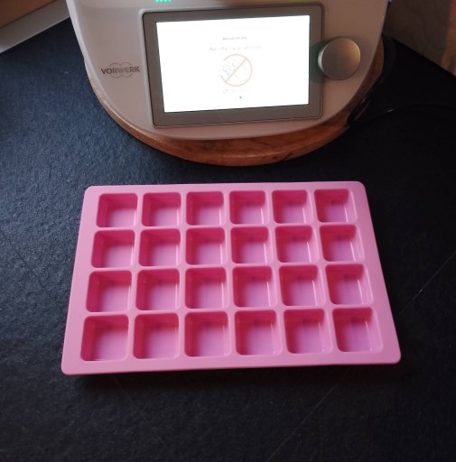 Dzięki tej formie silikonowej możesz uzyskac 24 sztuki monoporcji w kształcie sześcianów.