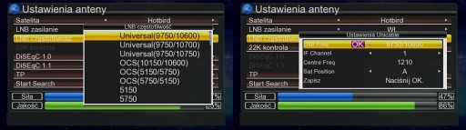 - Obsługa konwerterów Unicable A/B, SCR, DeSS LNB