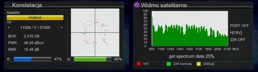 - Parametry pomiaru sygnału: siła sygnału, jakość, MER, BER, PWR, SNR