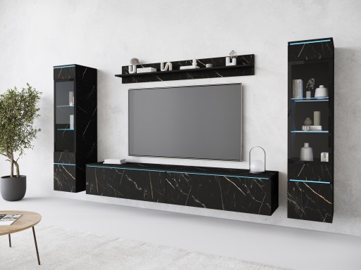 Szklane elementy można podświetlić oświetleniem LED co jeszcze bardziej uatrakcyjni szafkę i stworzy idealny klimat w pomieszczeniu.