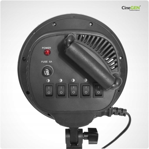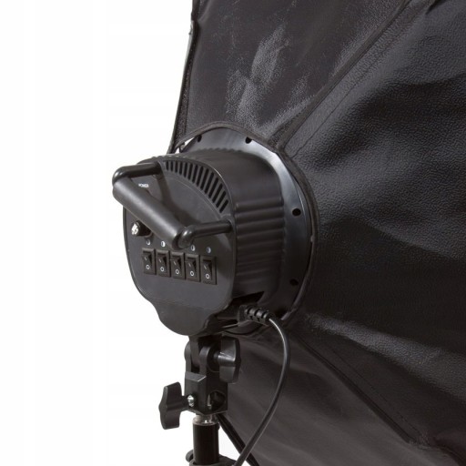 Softbox umożliwia skokową regulację mocy poprzez włączanie/wyłączanie każdej żarówki (0-20%-40%-60%-80%-100%).