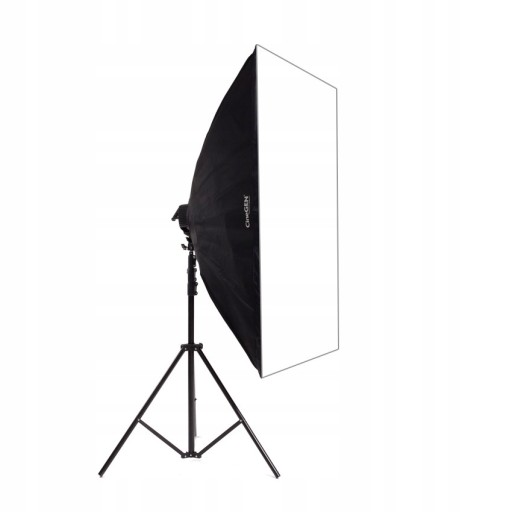 W komplecie kabel zasilający. Urządzenie posiada bezpiecznik. Softbox jest przystosowany do pracy z maksymalnie pięcioma żarówkami o maksymalnej mocy 85W każda. Zestaw mocuje się do statywów oświetleniowych za pomocą wbudowanego uchwytu, który umożliwia dowolną regulację kąta nachylenia.