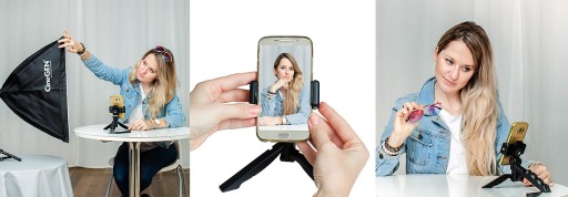 Podstawą zestawu jest kompaktowy uchwyt, pełniący równocześnie rolę statywu stołowego. Ciekawy i przemyślany projekt zapewnia uzyskanie doskonałych efektów (głównie ustabilizowanie ujęć w ruchu) z wykorzystaniem sprzętu amatorskiego i semi-pro (telefony komórkowe, bezlusterkowce, kamery GoPro®. Drugą częścią zestawu jest softbox, statyw oraz żarówka fotograficzna pełniące funkcję doświetlania ujęcia podczas nagrywania i robienia zdjęć. Niezbędny do uzyskania wyróżniających się ujęć.