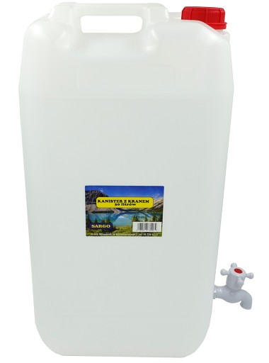 Kanister został wykonany z wysokiej jakości tworzywa sztucznego, które charakteryzuje się dużą wytrzymałością i odpornością. Dodatkowo wyposażony jest w regulowany kranik z zaworem kulowym oraz wygodny uchwyt (rączka) do noszenia.
