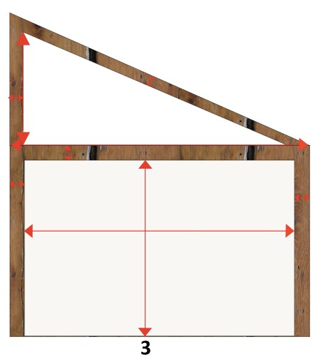 Mierzymy szerokość między belkami, wysokość od górnej belki do podłogi. Podajemy grubości belek. Podajemy również długość podstawy i wysokość trójkąta.
