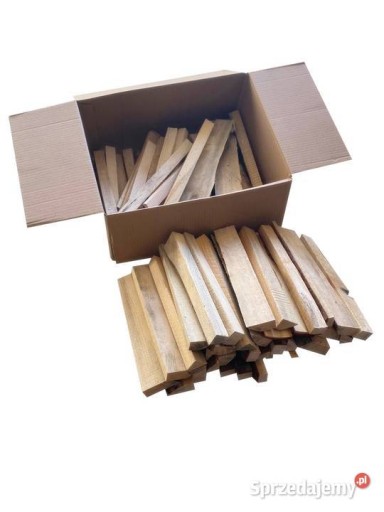 Podpałka sosnowa sucha, pakowana w kartonie o wymiarach 45x35x25 cm.