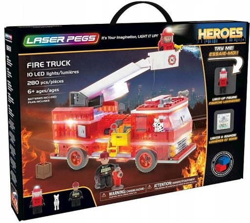 Laser Pegs to innowacyjne kolorowe klocki z półprzezroczystego tworzywa, pozwalające konstruować pojazdy, maszyny lub budowle i rozświetlać je za pomocą specjalnych klockowych modułów z wbudowanymi diodami LED.