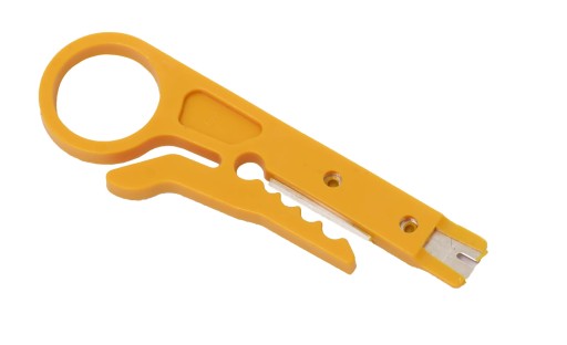 Uniwersalny i niezwykle poręczny nożyk od firmy FALON TECH do ściągania izolacji z przewodów typu skrętka.