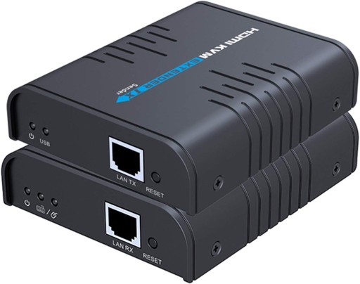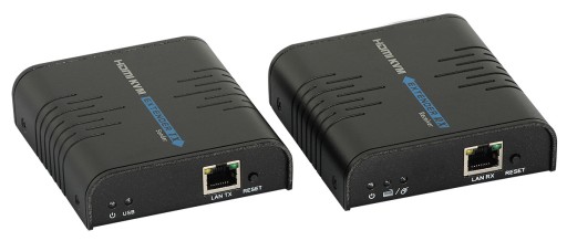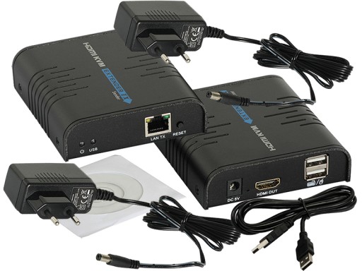 Transmiter obrazu HDMI po IP z przedłużeniem portu USB na odległość do 100m w rozdzielczości max. 1080p. Nadajnik TX i odbiornik RX.