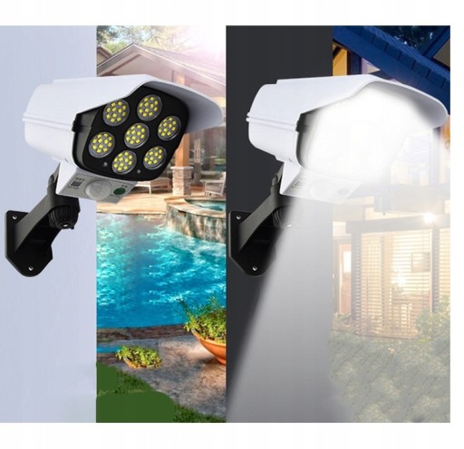 ✅Wysokiej jakości atrapa kamery to urządzenie zasilane z panelu słonecznego co gwarantuje oświetlenie bez dodatkowego źródła zasilania. Wyposażona została w bardzo jasny panel 77 punktów LED COB o mocnym strumieniu światła oraz czujnik ruchu i zmierzchu.