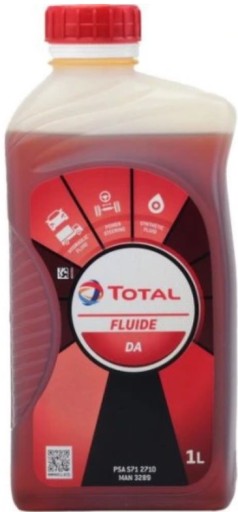 TOTAL FLUIDE DA to syntetyczny płyn koloru pomarańczowego do hydraulicznych i elektrohydraulicznych układów wspomagania kierownicy. Posiada bardzo wysoki wskaźnik lepkosci, doskonałe właściwości przeciwzużyciowe i ochornę przed korozją.