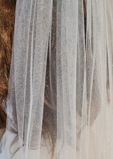 Welon ślubny jednowarstwowy170ct ecru z brokatem