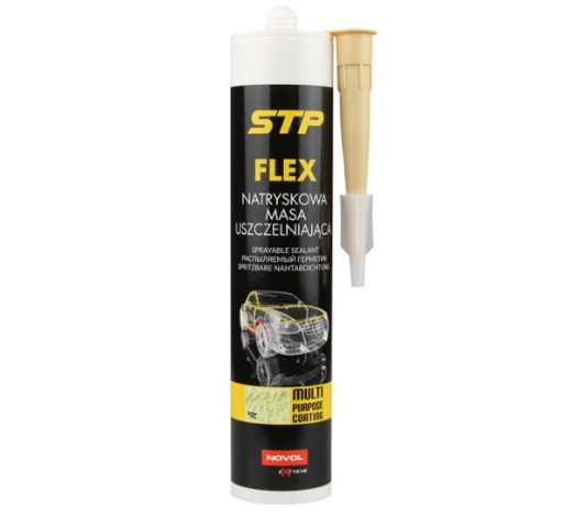 STP FLEX to hybrydowa natryskowa masa uszczelniająca na bazie żywicy polimerowej STP. Przeznaczona do uszczelnienia oraz zabezpieczenia zakładkowych i spawanych połączeń blach w elementach karoserii oraz odwzorowania oryginalnych struktur fabrycznych – OEM. Przy użyciu odpowiednich dysz i pistoletu możliwe jest uzyskanie różnych efektów. Od wąskich pasków, przez szersze po struktury typu „baranek”.