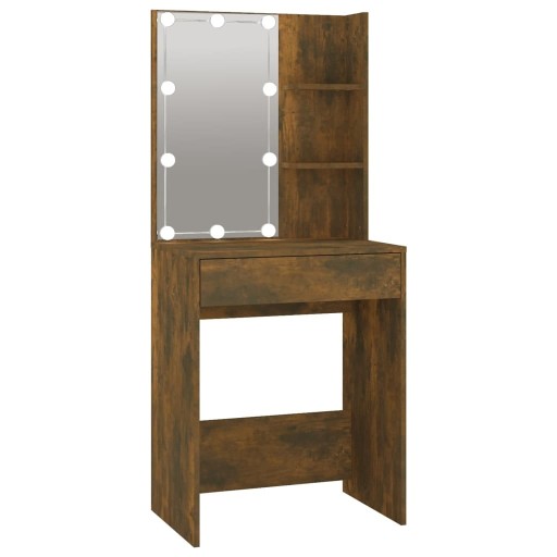 TOALETKA Z OŚWIETLENIEM LED I SZAFKĄ, PRZYDYMIONY DĄB